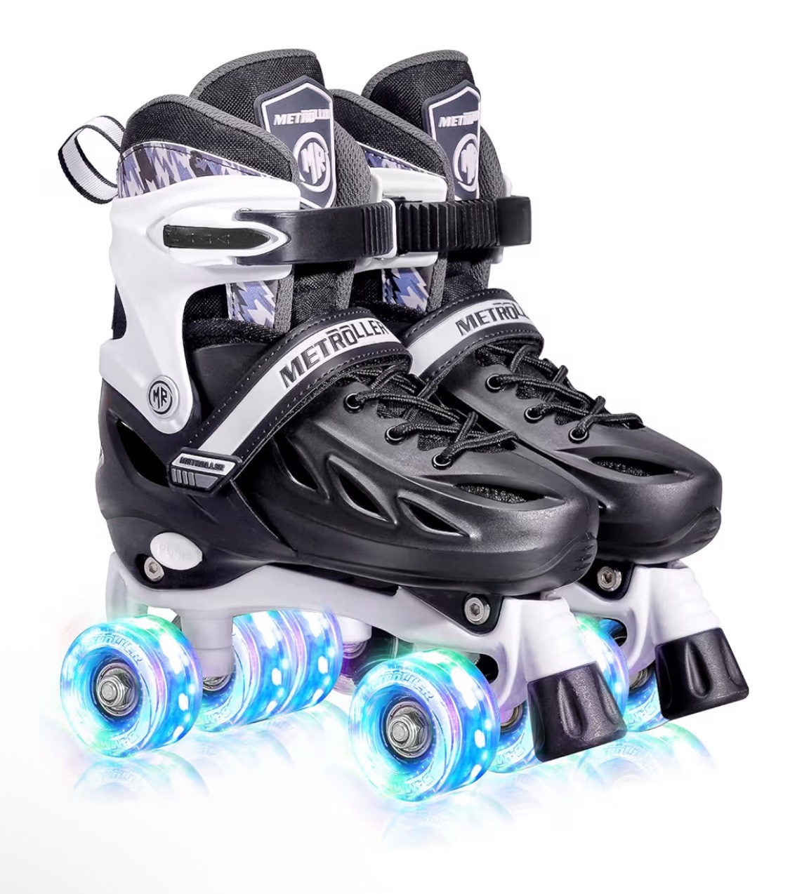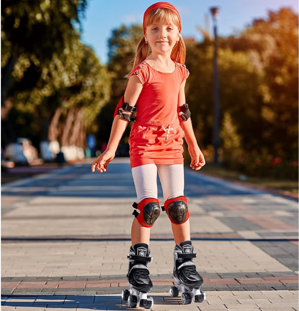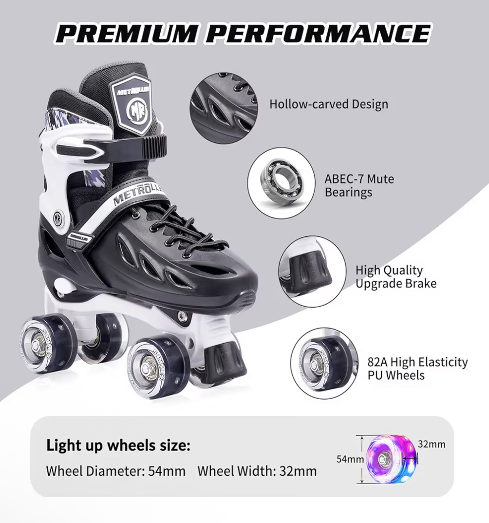 * Unique Roller Skates Belong Only To You Roller skates can be easily adjusted to 4 different sizes with its size-adjustment button. Plus a thicken memory liner,the roller skates will remember the shape of your feet and improve the wrapping of your feet. Create a pair of unique roller skates that belong only to you