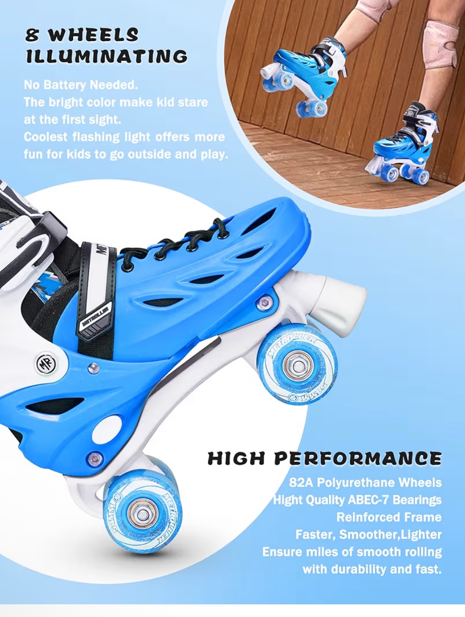 Adjustable LED Roller Skates for Boys & Girls -4 Size Expandable( Blue)