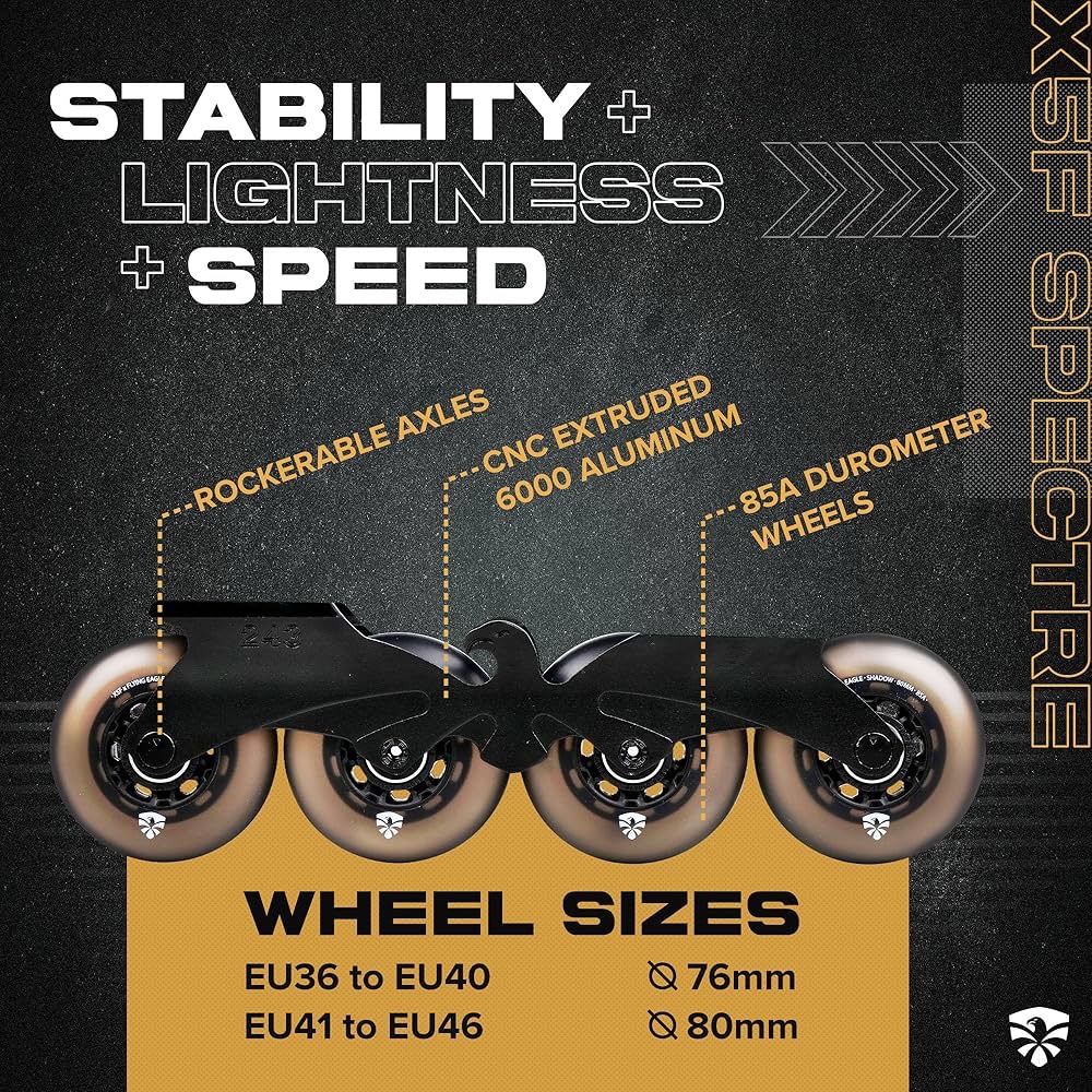 • CNC ALUMINUM FRAME WITH ROCKERABLE AXLES: Flying Eagle skates feature CNC aluminum frames designed for responsive handling and support during urban skating. The rockering axles improve turning precision, making them ideal for inline skates adult users who value control. Suitable for roller skates for men and also for roller skates for women and men, these frames support a stable ride for those using adult skates in everyday or freestyle environments.