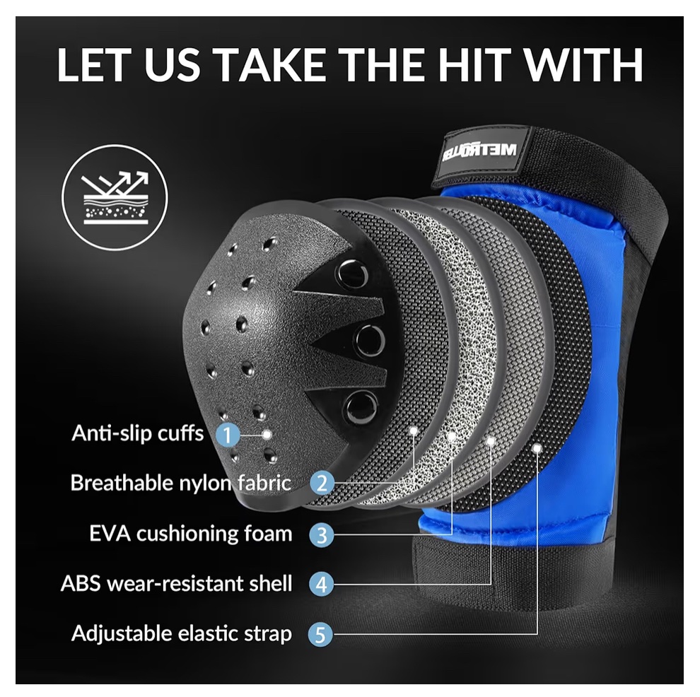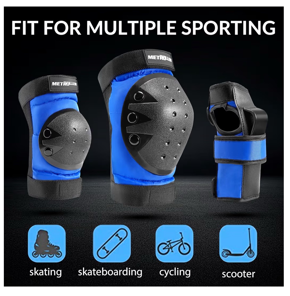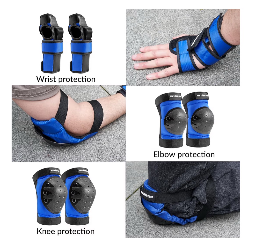 METROLLER Adult & Kids Protective Gear Set for Men, Women Youth Knee Pads, Elbow Pads & Wrist Guards 3 in 1 for Skateboarding Multi-Sports Protective Gear’s ( Blue)