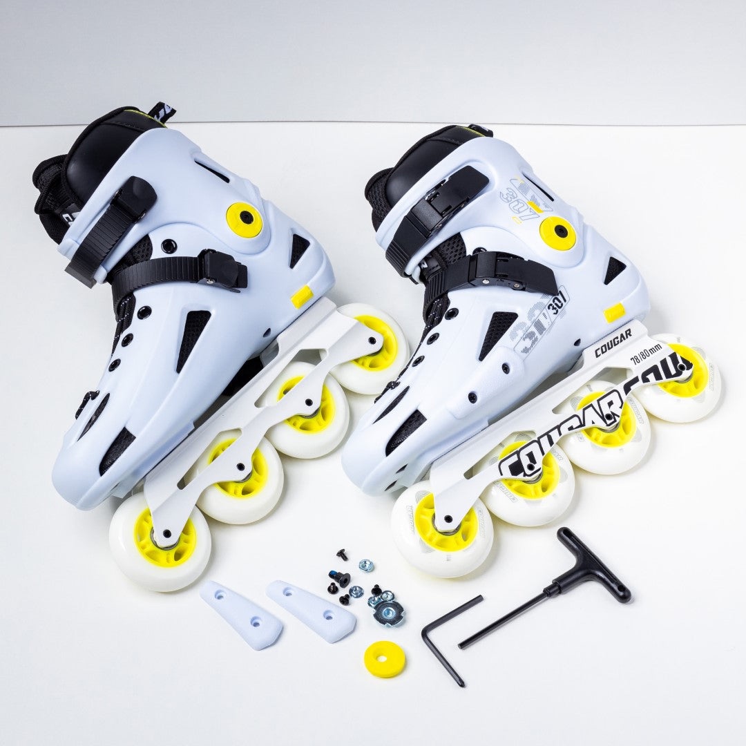 * Integrated Cnc Shell—-This design allows skates to be perfectly stable, balance, and control. Removable friction blocks on the outside of the shoe for rotating, braking and flashy movement, can be replaced when thinned
