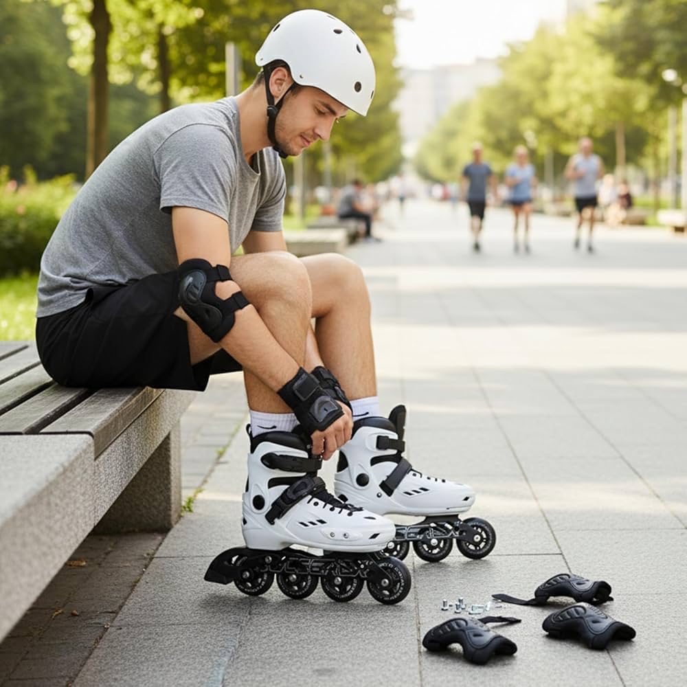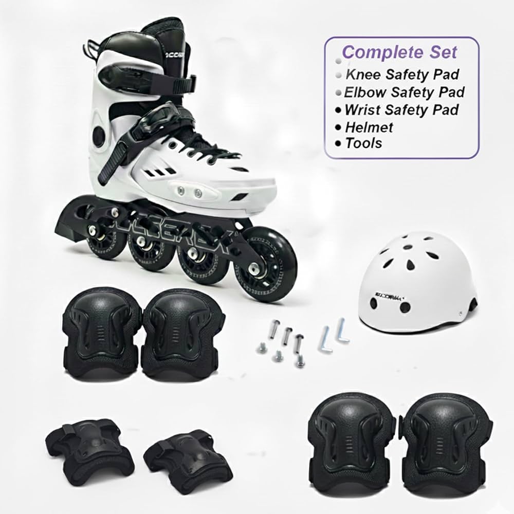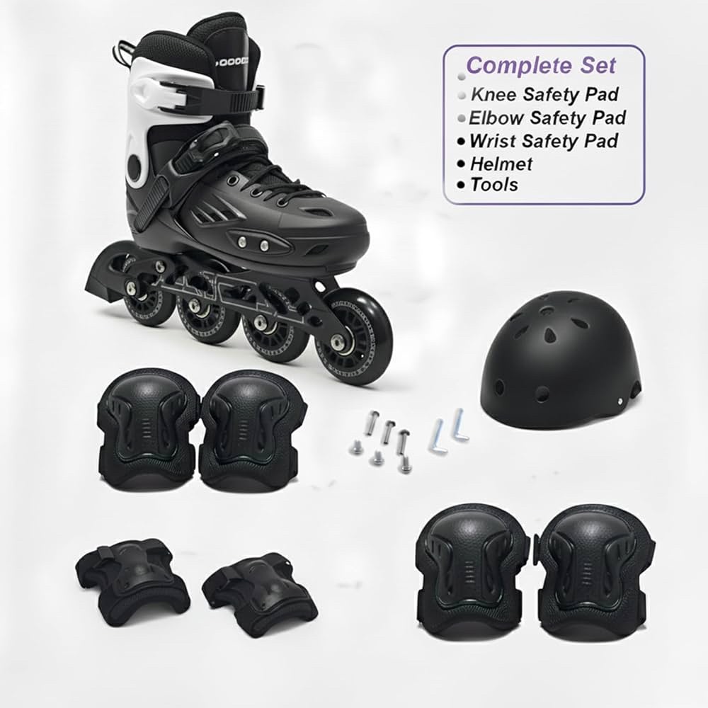 Complete Safety Gear Set Included: Comes with a protective helmet, knee pads, elbow pads, and wrist guards to give full safety during outdoor rides, training sessions, and high-speed skating.