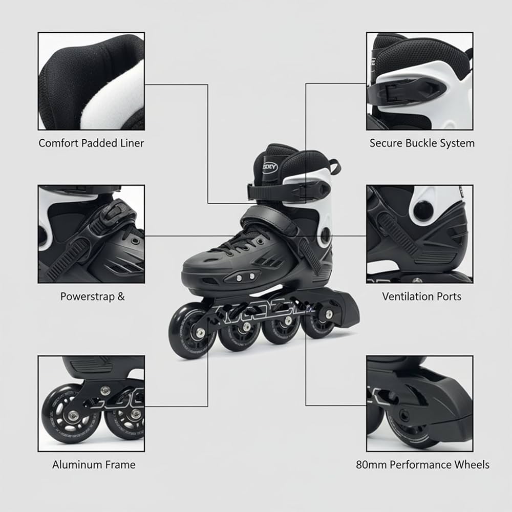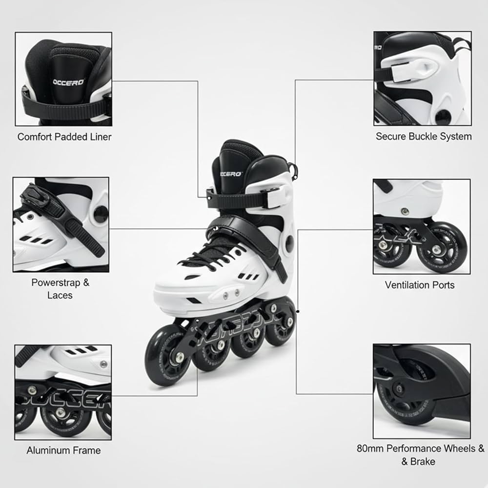 Maximum Comfort & Support: Breathable padded liner, secure lace system, power straps, and reinforced ankle support deliver a snug, comfortable fit for long skating hours without pain or blisters.