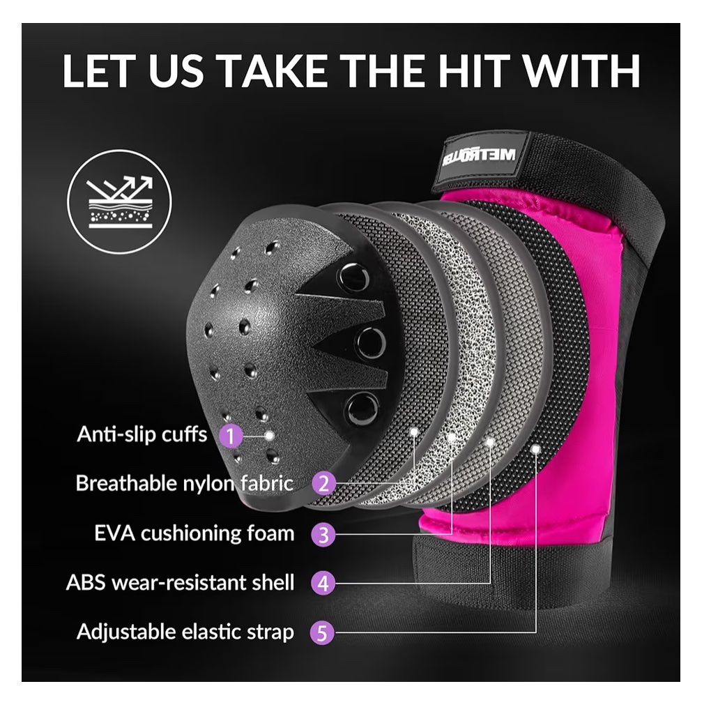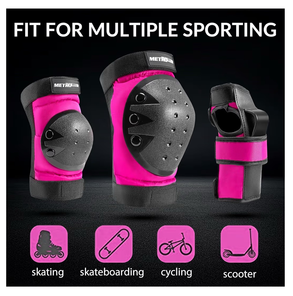 METROLLER Adult & Kids Protective Gear Set for Men, Women Youth Knee Pads, Elbow Pads & Wrist Guards 3 in 1 for Skateboarding Multi-Sports Protective Gear’s (pink )