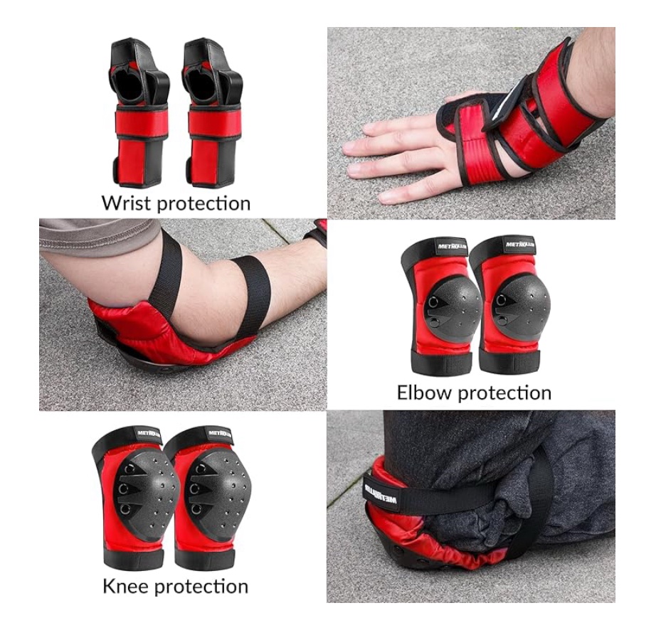 * EASY TO CARRY The 6-in-1 protective set includes knee pads, elbow pads, and wrist guards. The protective gear set can be carried in a mesh bag when playing sports indoors or outdoors. It can be taken anywhere due to the lightweight and convenience.