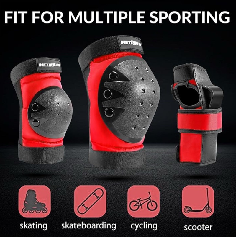 * FIT FOR MULTIPLE SPORTING The protective gear set can be used with roller skating, skateboarding, cycling, scooter and various action outdoor sports to provide you with protection. To prevent the protective gear from falling off and shifting during exercise, please make sure that each part is worn correctly.